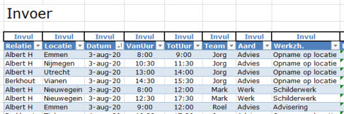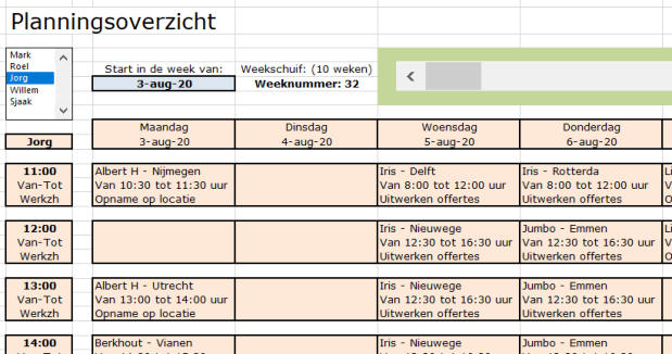 Nadat een klus is ingevoerd zal in het planningsoverzicht per week de werkzaamheden voor een betreffende werknemer zichtbaar